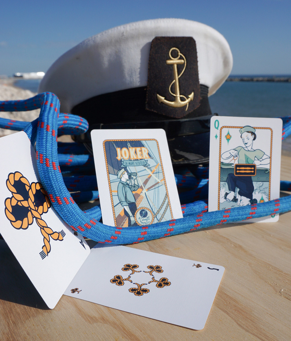 • Illustrated court cards blending maritime spirit and timeless design